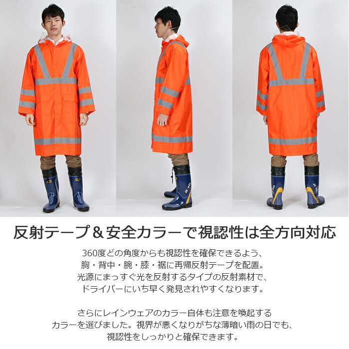 ポイント10倍 レインコート レディース メンズ 男女兼用 レインウエア レインウェア カッパ 合羽 雨具 フリー フリーサイズ 安全 蛍光 反射材 作業用 交通整理 道路工事 警備 梅雨 3820 視認性レインコート